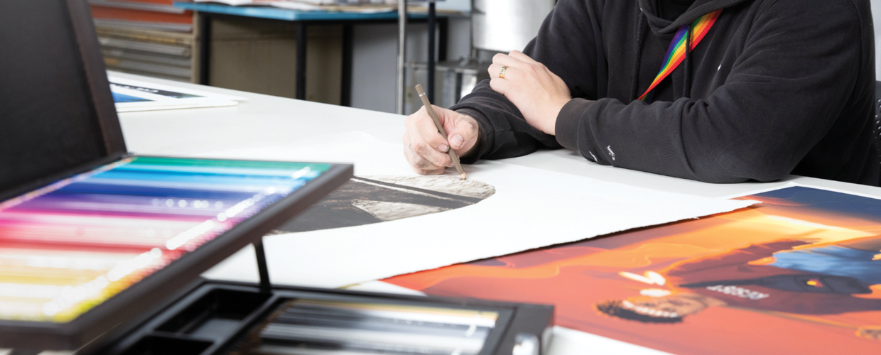 The studio is supported by a full-time Studio Manager, Creative Director, and Contemporary Australian Indigenous Art (CAIA) academic staff and Indigenous Engagement Officer. A key priority of LiveCAIA is cultural leadership and integrity. We support a thriving community that prioritizes cultural ethics and protocols while navigating creative practice and the commercial design and visual arts sector.